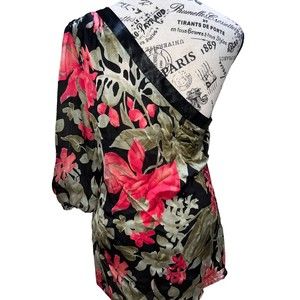 Bebe 100% silk cold shoulder Flowery top