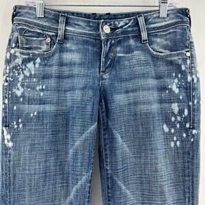 Bebe (28) (31x34) Long Distressed Bootcut Jeans Bleached Light Wash Low Rise