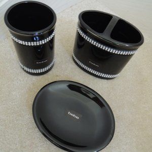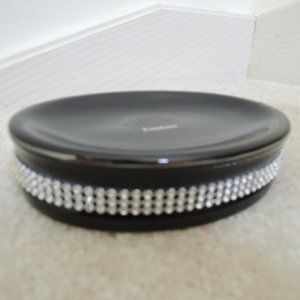 Bebe 3 Pc Bathroom Set Black Ceramic + Rhinestone Soap Dish/Tumbler/Holder NEW.