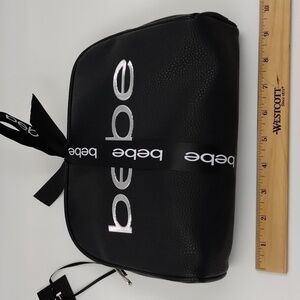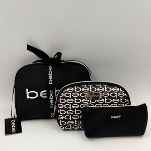Bebe 3 piece makeup toiletry zip top bags black and white