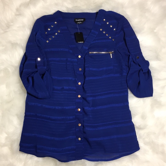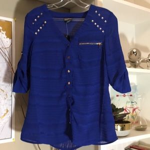 Studded shirt with zipper pocket and button up sleeves. Snap buttons NWT