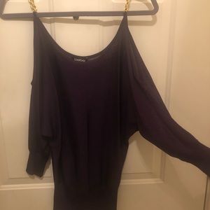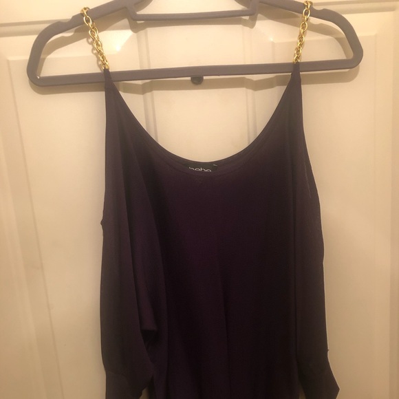 Beautiful Bebe exotic top features gold fancy gold chain straps
