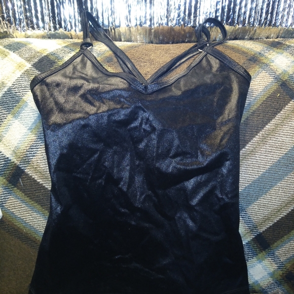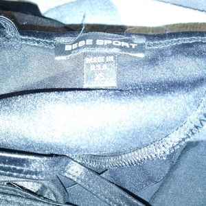 Bebe top xs small the material is nylon, spandex and cotton. Never worn sat in storage. Will freshen up before shipping.