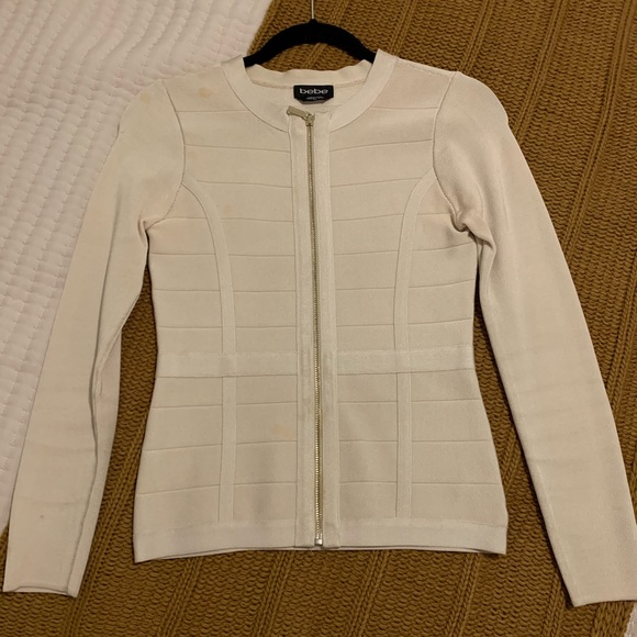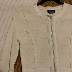Bebe zip up, bandage fit, has stains (see photos).
