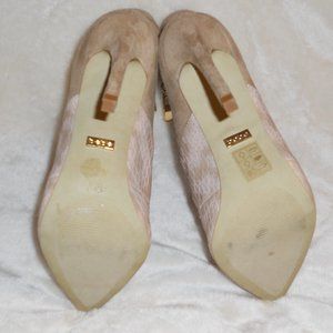 Bebe 6 Pink/Tan Faux Snakeskin Stiletto Heels Side Zip Faux Suede Detail