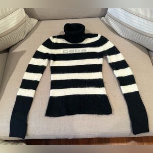 Beautiful cozy striped soft turtleneck with Bebe logo in rhinestones. Even prettier in person. Slightly used once.