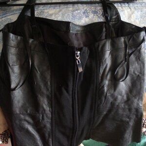 A Black leather top with zipper and straps for the shoulder size small. Message me if interested. Happy Holidays 🎄.