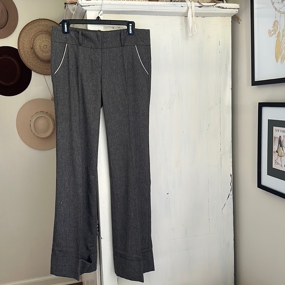 Bebe gray with cream detailing on front pockets wide leg with cuffed of bottom of trousers see video/pic size 6