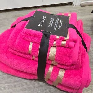 Bebe 6-Piece Gold Striped Embroidered Towel Set- Pink/Gold