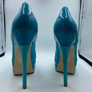 Bebe Acqua Blue Satin Platform Stiletto Pump Heels Size 6