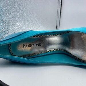 Sunning Bebe Acqua Blue Satin Platform Stiletto Pump Heels Size 6, round toe, work once immaculate conditions inside and outside.