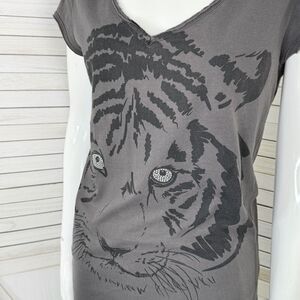 Bebe Addiction Vintage Tiger Face Cage Back Tee Shirt Grey Small Rhinestone