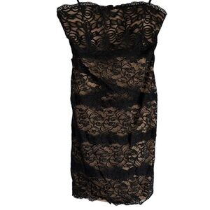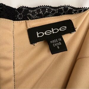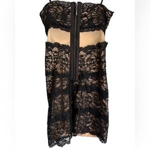 Bebe All Over Lace Strapless Mini Dress- Black/Tan Size Small