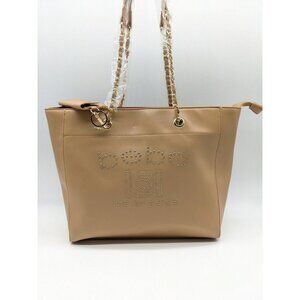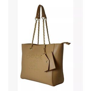 Bebe Allegro Faux-leather Medium Tote + Card case Charm 2 Piece Set - Tan