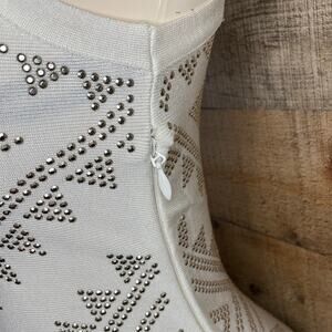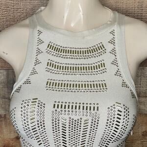 Bebe Alyssum Beaded Bodycon Sleeveless Mini Dress Cutout Silver White Size Small