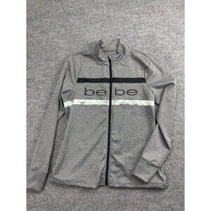 Bebe Athletic Track Jacket Women's XL Heather Gray Mesh Striped Zip Front Pocket