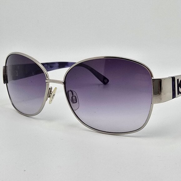 Bebe BB7054 Delicious Silver Purple Cheetah Print Frame Purple Lens Sunglasses