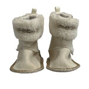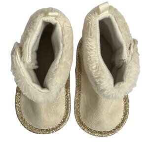 Bebe Baby Girl Faux Suede Boots Size 2 Cream Gold Winter Ankle Booties
