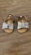 Gorgeous Bebe Baby Sandals in sparkling Rose Gold, featuring a glitter bow, velcro back, and a comfy flat design. Perfect for your little one’s first steps! Size 1 infant.