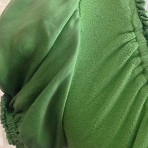 Bebe • Low cut baby doll top with silk sleeves. 93% Rayon/7% Spandex. Contrast 100% silk.