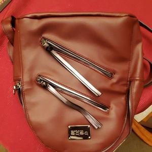 Gently used maroon BeBe backpack. Two exterior pockets with zippers. Interior pockets for phone and one zipper pouch. Trendy, and fashionable.