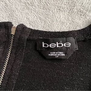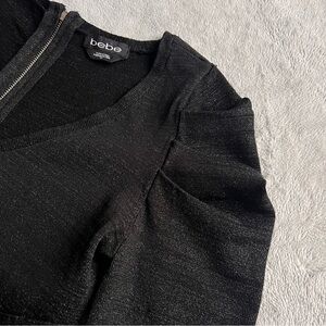 Bebe Bandage Bodycon Stretch Knit Puff Sleeve Shimmer Cropped Evening Top Black