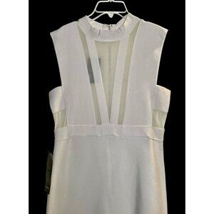 Bebe Bandage Dress Bodycon Mini Mesh Cutout Plunge Sexy L White NWT Y2K 90s