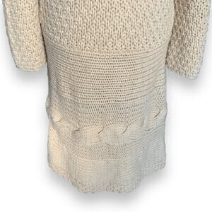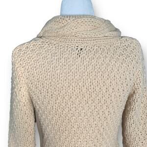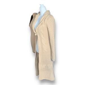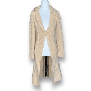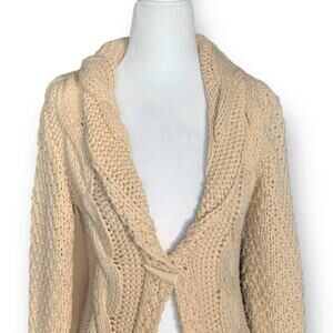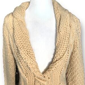 Bebe Beige Chunky Knit Longline Cardigan Sweater Shawl Collar Toggle Closure