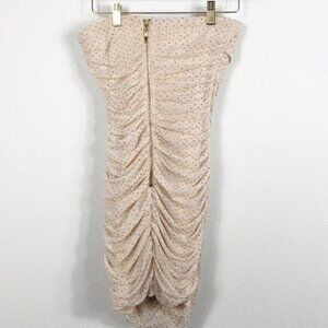 Bebe Beige Mesh Gold Studs Strapless Dress New Years Eve Wedding Date Size Small
