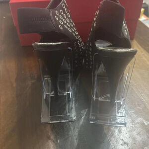 Fabulous Bebe Black leather and Grommet peep toe ankle boots booties sz 7