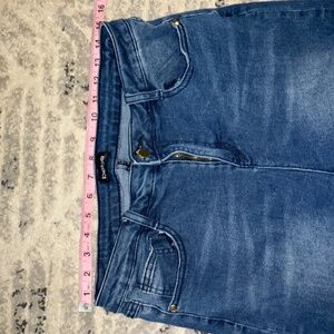 These Bebe shorts for women in size 30 are a stylish addition to any wardrobe. Made from a stretch denim fabric blend of spandex and cotton, these high rise Bermuda shorts feature a classic solid blue color with a button closure. Perfect for casual or travel occasions, these shorts have a 9-inch inseam and a flat front design. The regular fit and stretch material ensure comfort and freedom of movement, making them ideal for all seasons. Add a touch of 90's style to your outfit with these versatile and chic shorts from Bebe.