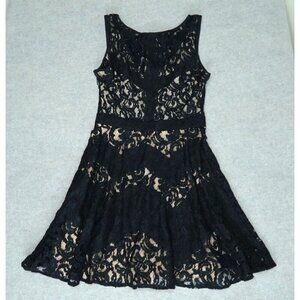 Bebe Black A-Line Crochet Dress Lined Evening Cocktail Midi Women's Size 8