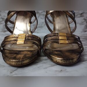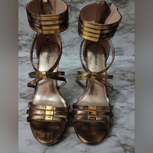 Bebe Black And Gold Metallic Strappy Heels Sandals Size 9