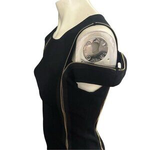 Bebe Black Bandage Dress with Silver Zippers Cold Shoulder Convertible Bodycon