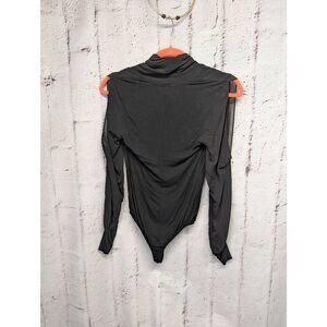 Bebe Black Black Mulberry Silk Slit Sleeve Crossover Wrap-Front Surplice Top Bodysuit Size Xs