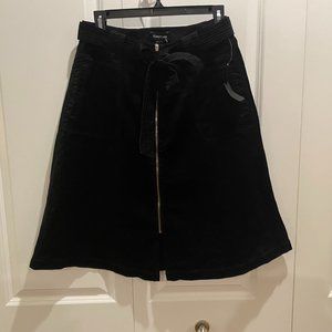 Bebe Black Corduroy A-Line Skirt w Front Zip, Pockets and Tie Belt Size 10 NWT