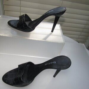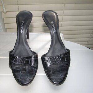 Bebe Black Croc-Embossed Slip-On Stiletto Heels | Sexy Mules Size 9M