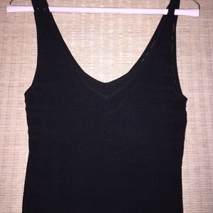 Great dress, purchased at Bebe in Las Vegas. Crocheted (kind of) dress, black removeable liner. Approximately 41" from shoulder to bottom.