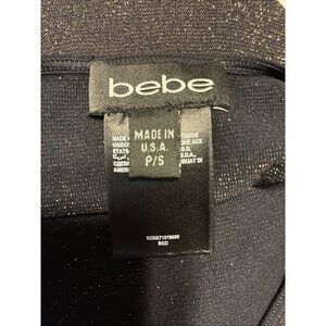 Bebe Black Gold Metallic Nylon Round Neck Long Sleeve Top Xs Small