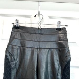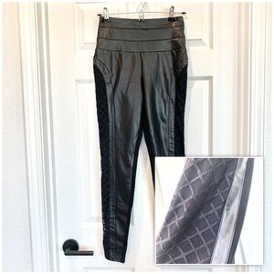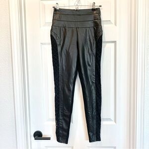 Bebe Black High-Waisted Wide Waistband Mesh Inset Faux Leather Stretch Leggings