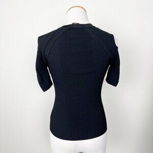 Bebe Black Keyhole Cutout Cold Shoulder Ribbed Knit Top Womens XS