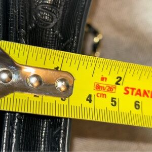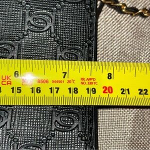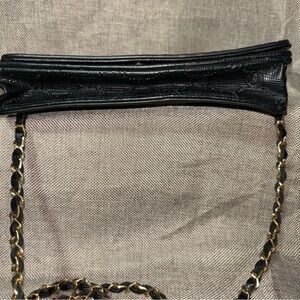 Bebe Black Los Angeles Snap Logo Embossed Crossbody Faux Leather and Chain Bag