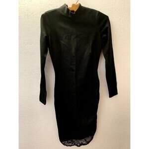 Bebe Black Mock Neck Long Sleeve Lace Back Dress SIZE S