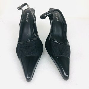 Bebe Black Patent Leather Mesh Pumps Heels Sz 7
