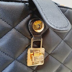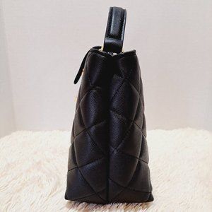 *REASONABLE OFFERS ACCEPTED* Length 12" - Width 4" - Height 8.25". One handle strap. Made of 100% Polyurethane. Front compartment has a snap closure with 2 wall slip pockets. Rear compartment has a zipper closure with a wall zipper pocket. Excellent condition. Just one tiny flaw as seen in the last picture.