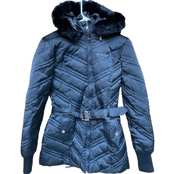 Bebe Black Rabbit Fur Trim with Blended Down Feather Jacket I Size: S