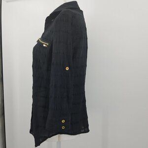 Bebe Black Semi-Sheer Button Front Blouse