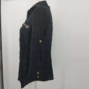 3/4 sleeves. Crinkle fabric. Semi-sheer.