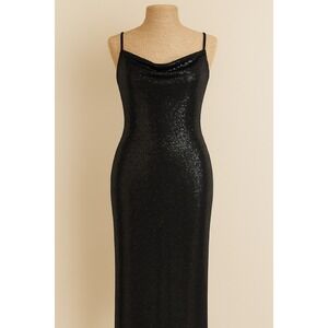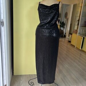 Bebe Black Sequin Maxi Slip Dress Cowl Neck 1950s Hollywood Glam Evening Gown