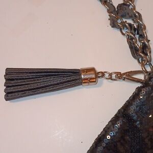 Bag has some discoloration around zipper and the chain leather is damaged.